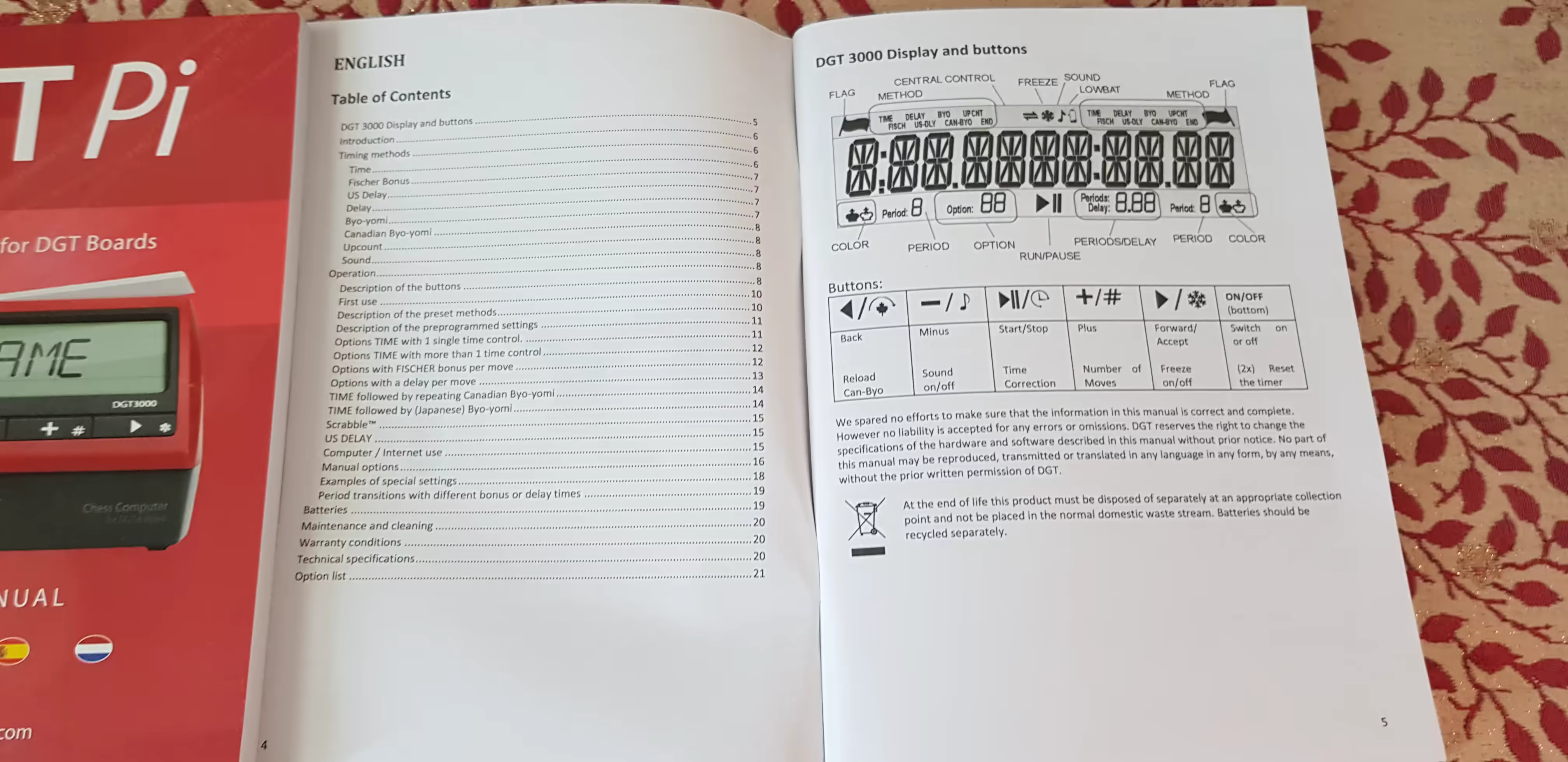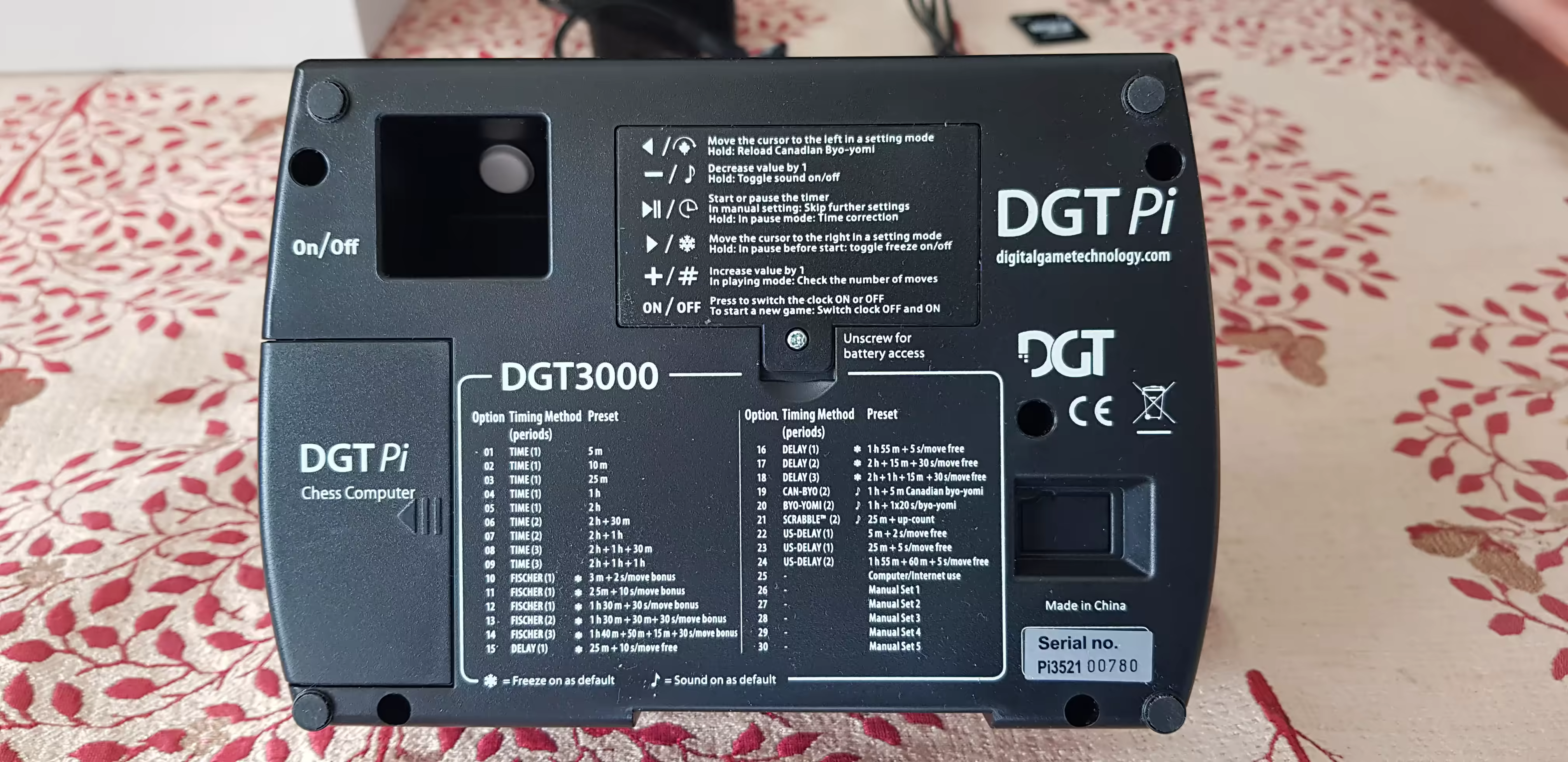 DGT Pi를 사용하려면 AA 건전지 2개가 필요합니다. 설명서에 따르면 시계로만 사용할 경우 약 10000시간, E-Board와 연결할 경우 약 2000시간 사용할 수 있다고 합니다.