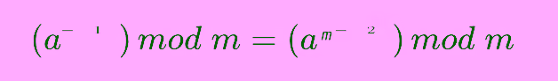 만약 m이 소수인 경우, 아래의 페르마의 소정리를 활용하여 모듈러 역원을 쉽게 구할 수 있습니다.
