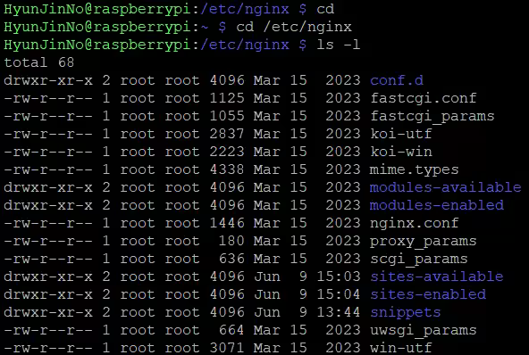 먼저 다음 명령어를 입력하여 /etc/nginx/sites-available 디렉토리와 /etc/nginx/sites-enabled 디렉토리에 있는 default 파일을 삭제합니다.
