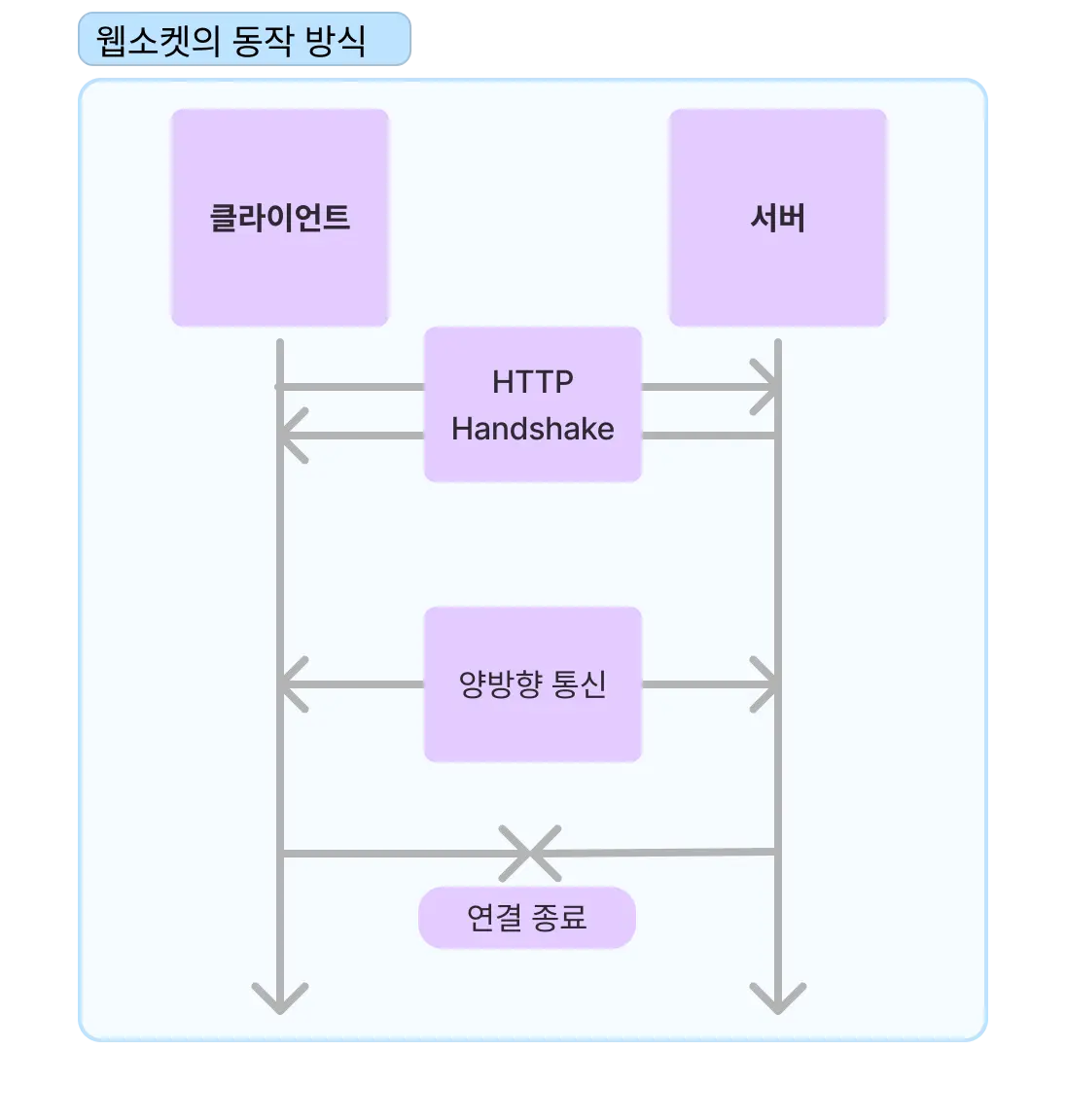 웹소켓은 HTTP와 달리 지속적인 연결을 유지하면서 양방향으로 데이터를 주고받을 수 있는 특징이 있습니다.