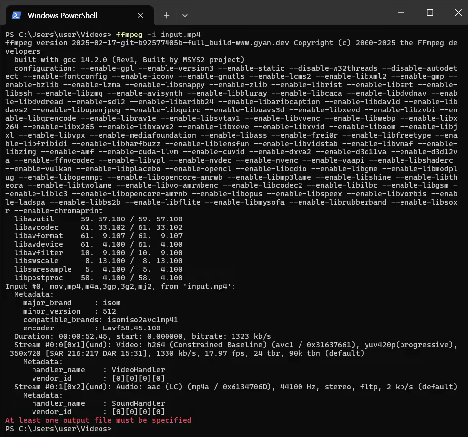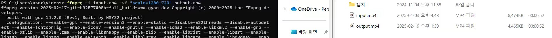 FFmpeg가 잘 설치되었는지 확인하기 위해 명령 프롬프트에서 ffmpeg을 입력합니다.