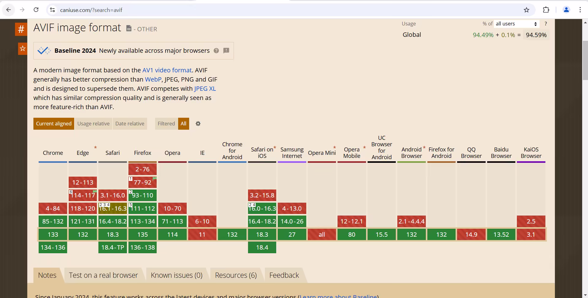 AVIF는 2019년에 개발된 최신 이미지 포맷으로서, 범용성이 낮다는 단점이 있지만 점차 개선되고 있습니다. 현재는 Chrome, Firefox, Safari, Edge 등 주요 웹 브라우저에서 지원하고 있으며, 점점 지원 범위가 확장되고 있습니다.
