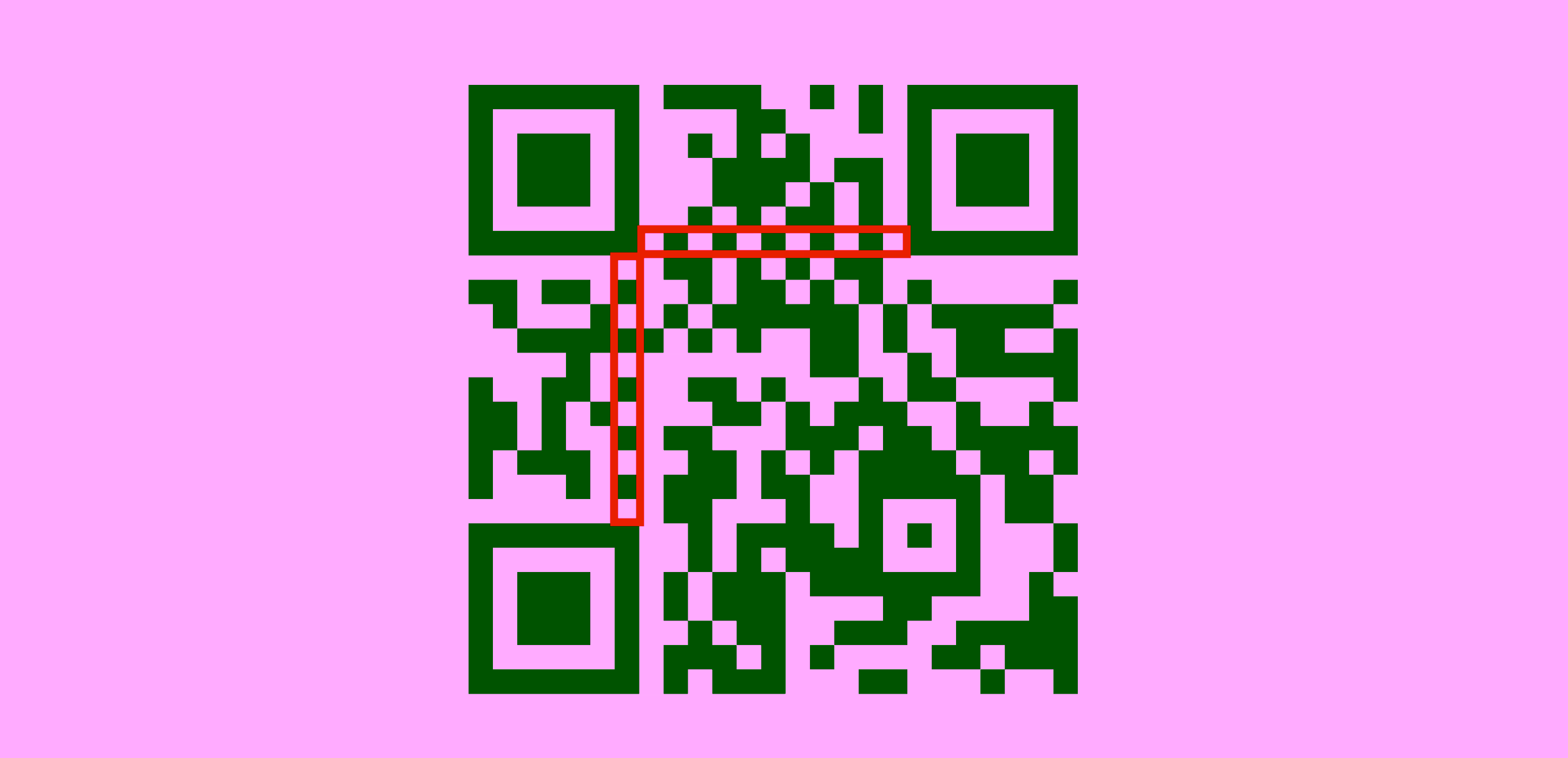 위치 탐지 패턴은 우측 하단을 제외한 좌상단 / 우상단 / 좌하단에 위치한 정사각형입니다. 이 위치 탐지 패턴을 통해 QR 코드의 회전 방향과 위치를 식별할 수 있으므로 어느 방향이나 각도에서 QR 코드를 찍어도 정확하고 빠르게 인식할 수 있습니다.