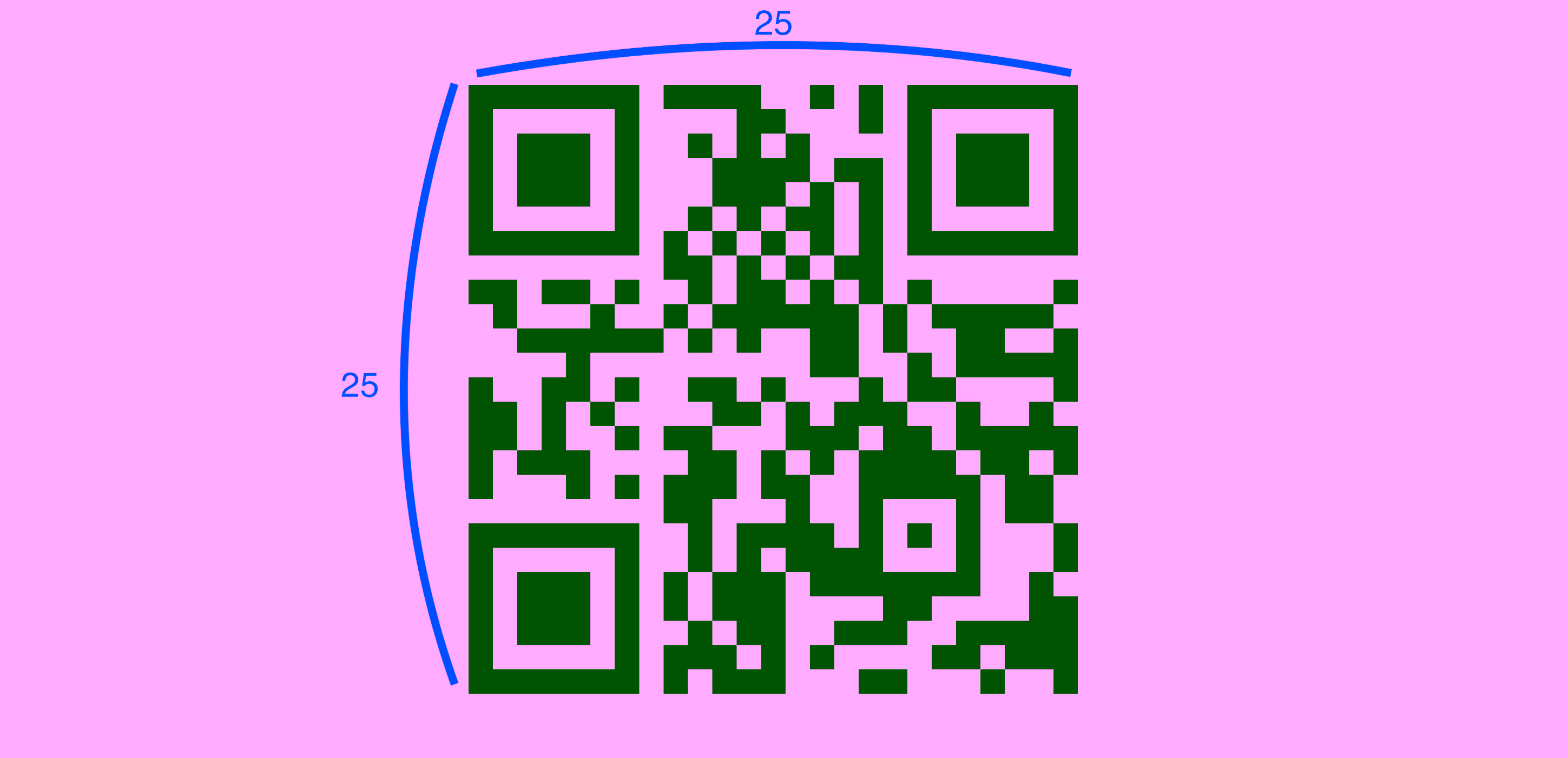QR 코드 크기는 버전으로 정의됩니다. 최초로 개발된 QR 버전 1은 21 x 21셀이었으며, 크기를 4셀씩 확장하면서 버전을 늘렸으며,